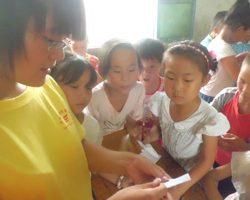 她有很強(qiáng)的責(zé)任心,開課第三天晚上下了暴雨,縣城里的街道積滿了雨水,在擦洗淋濕的衣物時,她嘴里念叨的卻是那群孩子。第二天一早到學(xué)校就將孩子們聚集在教室。點名發(fā)現(xiàn)六個孩子沒來,給家長們打電話也都是盲音。學(xué)校常年做飯的師傅說不會有事,可她還是感到不安。調(diào)整好課,便準(zhǔn)備去孩子們的家,好在剛出門就遇到了幾個孩子,他們都很安全,淚水卻濕了她的眼眶。