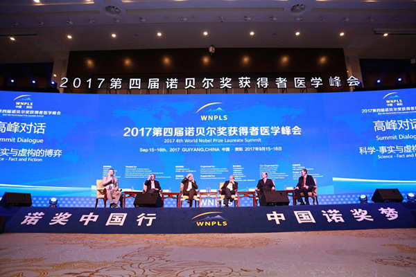 人民網(wǎng)貴陽9月15日電(李兵兵 王玫)9月15日,2017第四屆諾貝爾獎獲得者醫(yī)學(xué)峰會在貴陽開幕。五位諾獎得主、十余位中美院士、2000余位權(quán)威專家及國內(nèi)外生物醫(yī)藥產(chǎn)業(yè)新銳領(lǐng)袖、投資機(jī)構(gòu)將圍繞“科學(xué):事實與虛構(gòu)的博弈”主題開展交流。