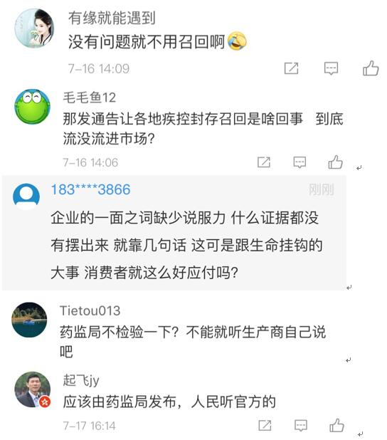 網(wǎng)友“楊O_o小仙兒”表示:“只想知道這個造假帶來的后果是什么?是之前接種過這個批次的都沒有藥效還是怎樣?有關部門能不能說清楚,這可是人命關天的事,不要這樣含糊其辭。”