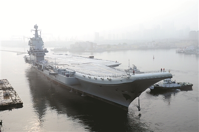 2018年5月13日,我國(guó)第二艘航母從大連造船廠碼頭啟航,赴相關(guān)海域執(zhí)行海上試驗(yàn)任務(wù)(圖片來源:新華社)