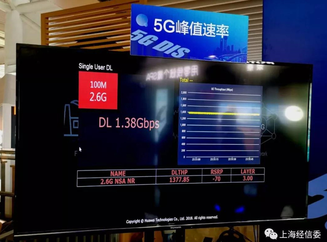 2月18日,上海虹橋火車站啟動5G網(wǎng)絡建設,計劃2019年年內(nèi)完成5G網(wǎng)絡深度覆蓋,將成為首個采用5G室內(nèi)數(shù)字系統(tǒng)建設的火車站。圖為5G峰值速率展示。(上海經(jīng)信委)