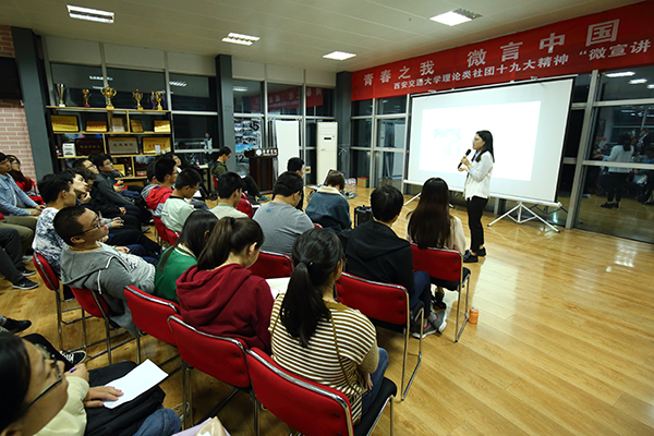 錄制前的電話初采時(shí),聽聞李婧竟是比記者僅大一歲的博士生,我訝異不止。清脆活潑的聲音,大方清晰的談吐,正是一場場宣講留在她身上的印記,也帶著遠(yuǎn)遠(yuǎn)超出她這個(gè)年紀(jì)的穩(wěn)重和堅(jiān)定。從2017年作為第一批宣講人加入西安交通大學(xué)學(xué)生微宣講團(tuán)開始,從山村小學(xué)到重點(diǎn)高校,從工廠車間到領(lǐng)軍企業(yè),從邊防軍營到繁華都市,李婧的足跡遍布22個(gè)省(市、自治區(qū)),參與宣講工作。