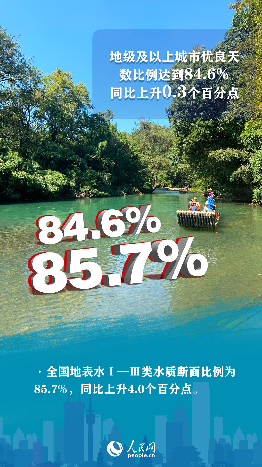 推進(jìn)重大工程實(shí)施。繼續(xù)加快實(shí)施“十四五”規(guī)劃102項(xiàng)重大工程中大氣、水、土壤、固體廢物污染防治和核與輻射安全監(jiān)管等生態(tài)環(huán)境領(lǐng)域重大工程項(xiàng)目。今年上半年,全國(guó)生態(tài)環(huán)境質(zhì)量持續(xù)改善。其中,地級(jí)及以上城市優(yōu)良天數(shù)比例達(dá)到84.6%,同比上升0.3個(gè)百分點(diǎn)。全國(guó)地表水Ⅰ—Ⅲ類水質(zhì)斷面比例為85.7%,同比上升4.0個(gè)百分點(diǎn)。