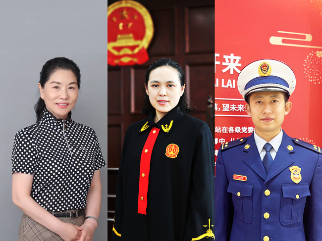 從左到右依次為全國最美信訪干部、北京市豐臺區(qū)信訪辦公室二級巡視員王凱,北京市朝陽區(qū)人民法院南磨房人民法庭副庭長、四級高級法官付艷,北京市朝陽區(qū)消防救援支隊奧林匹克公園特勤站副指導員、三級指揮員仇志宏
